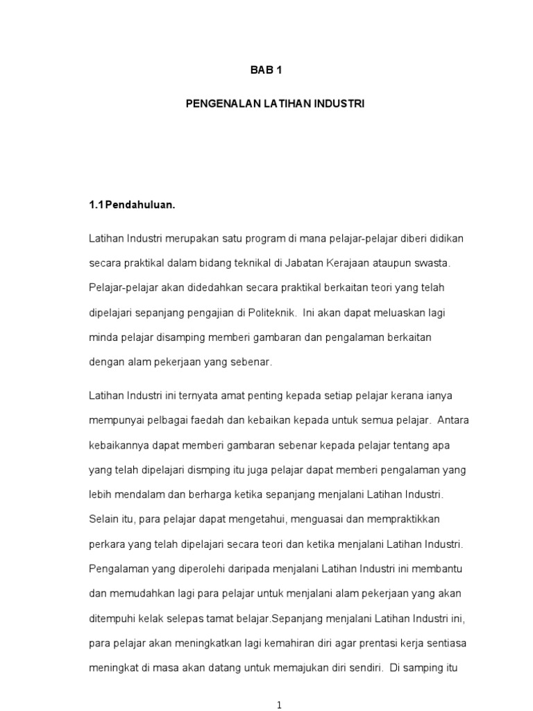 Bab 1 Pengenalan Latihan Industri Pdf
