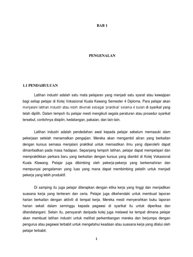 Bab 1 Docx Bab 1 Pendahuluan 1 1 Pengenalan Latihan Industri Li Merupakan Satu Kompenan Utama Dalam Kokurikulum Pembelajaran Bagi Jabatan Course Hero